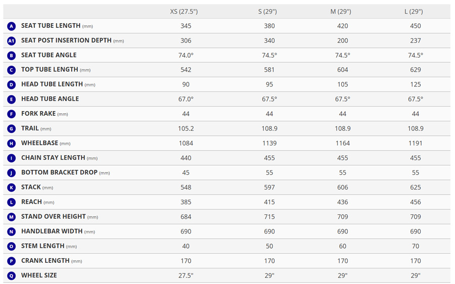XS: 80mm travel (27.5) ,