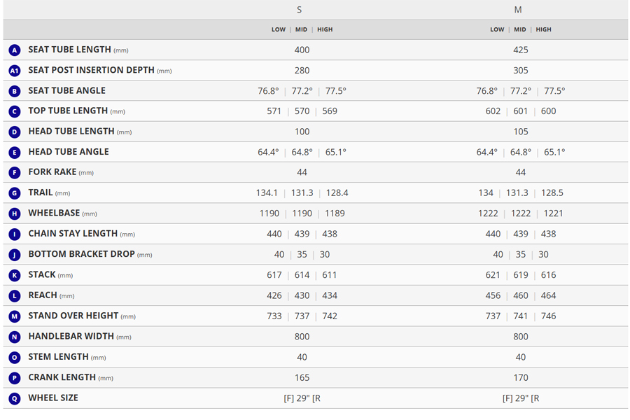 M: 140-170mm travel /