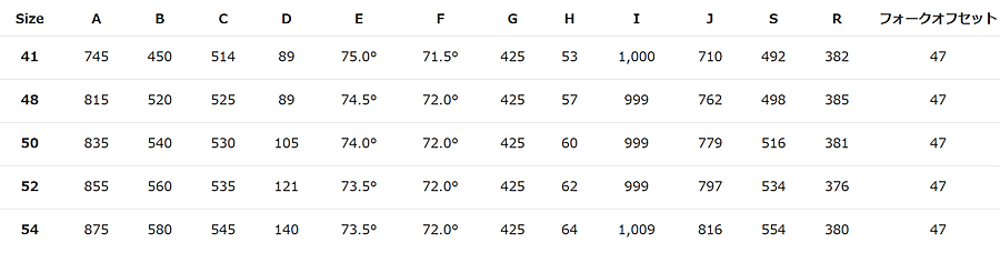 | コラムスペーサー | 40mm ※ステム下の最大スペーサー量 | ||||||||||||||||||||||||||